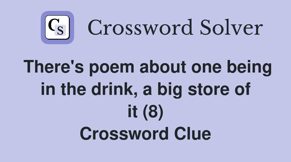 There's poem about one being in the drink, a big store of it (8